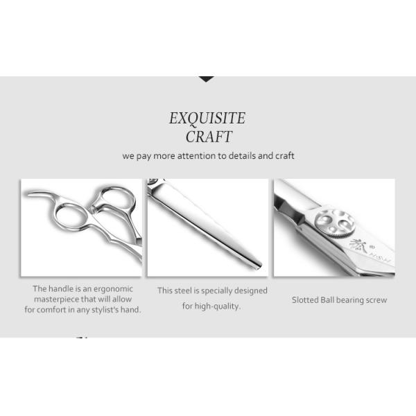 This shears have a sharp and smooth cutting quality, fine workmanship, Unique wave shape on the back of blade, bearing design brings precise precision of scissors, fine polishing by professional technicians, strict quality control, VGYM-60 shears featuring the ultra sharp slide cutting convex edge made from the highest Quality Japanese VG-10 Super Steel (Rockwell Hardness of 62+). This steel is specially designed for high-quality has good stability and can be your good partner for a long time.